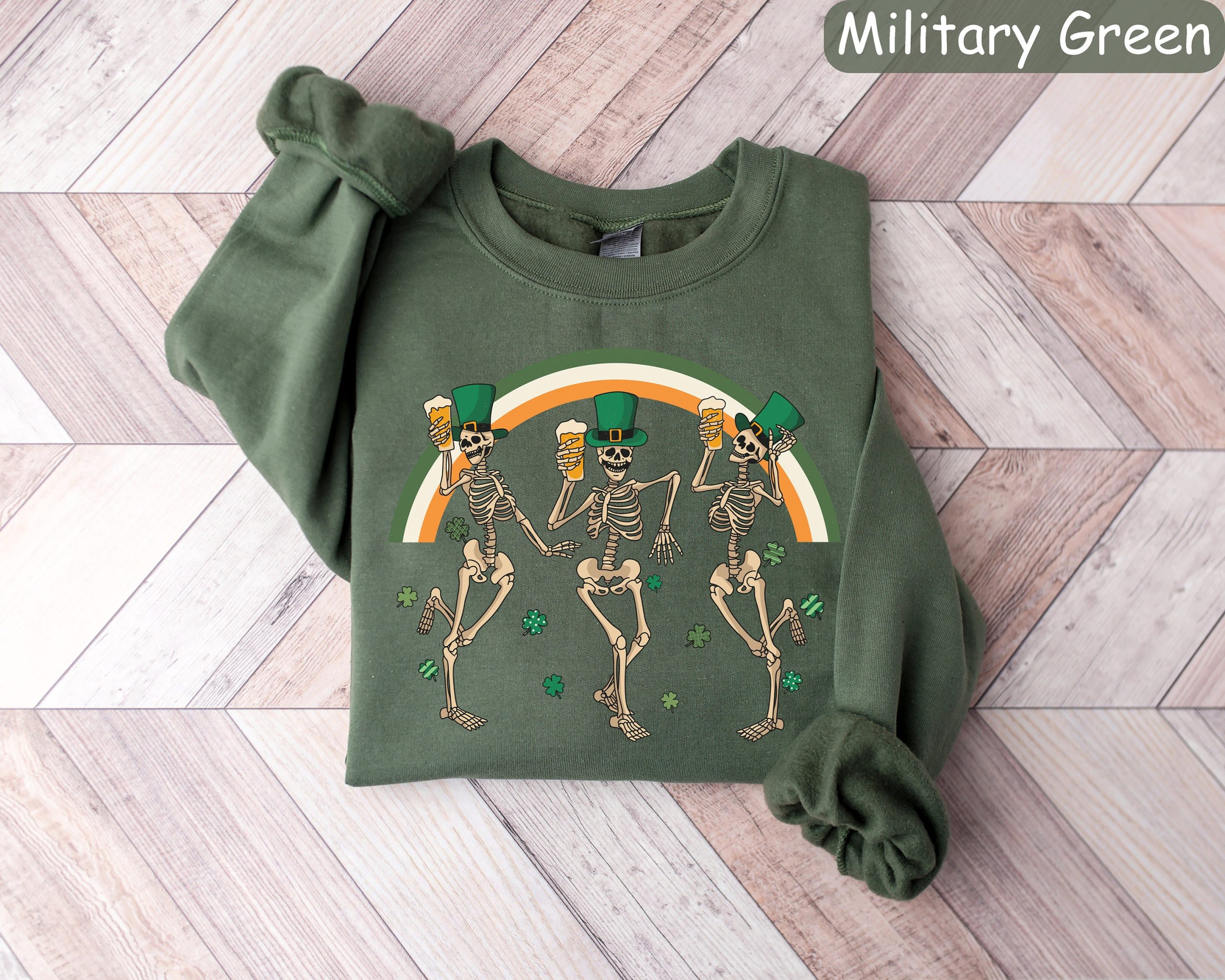 St Patricks Day Skeleton Sweatshirt, Rainbow St Patrick’s Day Shirt, Dancing Skeletons Shirt, Irish Sweater, St Paddys Day, Shamrock Shirt